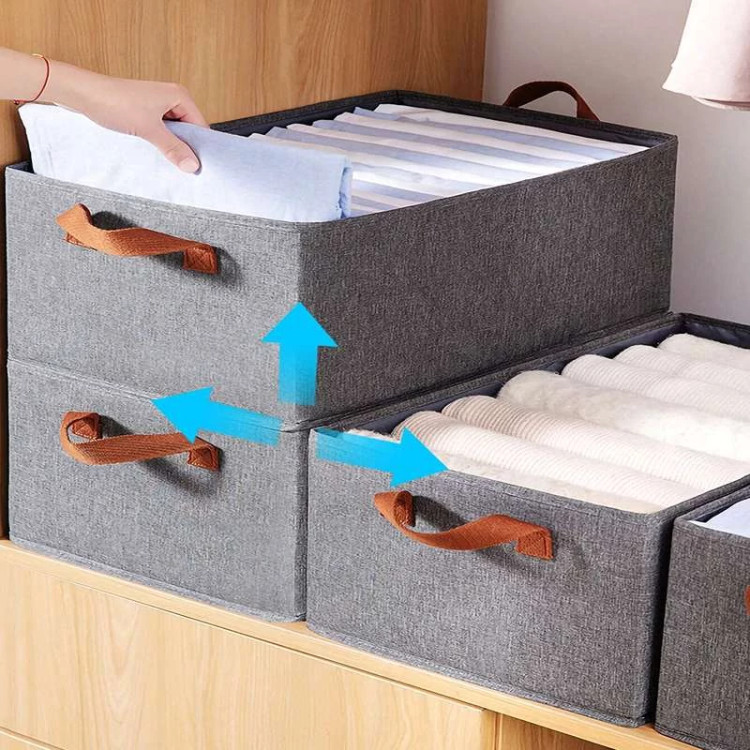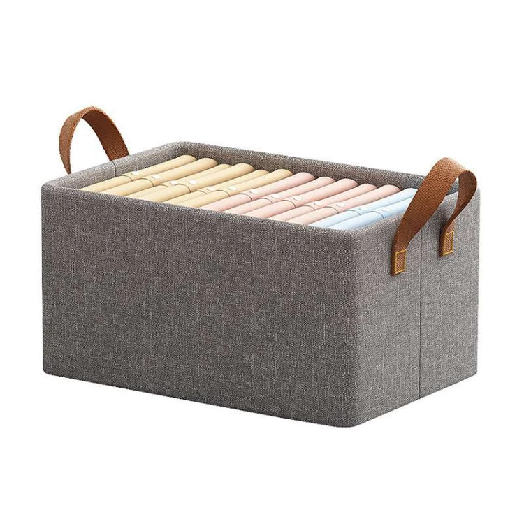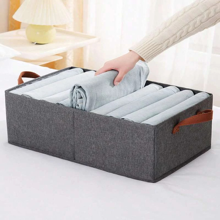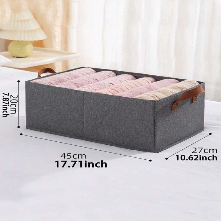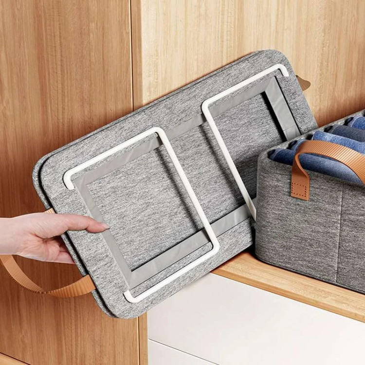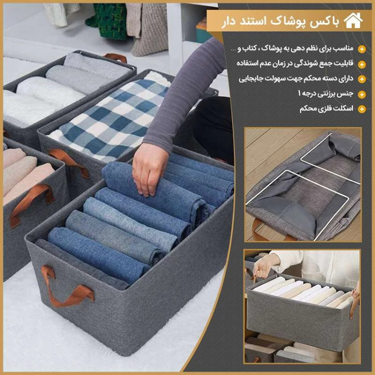 باکس لباس و شلوار داخل کمد یک جعبه پارچه ای بسیار مقاوم اما سبک و کم حجم به شکل مستطیل با ابعاد طول 40، عرض 25 و ارتفاع 24 سانتیمتر میباشد که دارای اسکلت داخلی جمع شونده است که علاوه بر حفظ شکل ظاهری باکس، استحکام بیشتری نیز ایجاد مینماید. باکس لباس و شلوار داخل کمد با ارتفاع مناسبی که حین باز کردن آن وجود دارد میتوان حجم قابل توجهی از لباس و پیراهن و شلوار را در داخل خود جای دهد. در صورت عدم استفاده از این باکس لباس اسکلت دار هیچ محدودیتی بابت جمع کردن و قرار دادن آن در جای مناسب نخواهید داشت و به گونه ای است که به راحتی تا میشود و میتوانید آن را در کشو و قفسه بگذارید. همچنین جنس پارچه ای ضخیم با قابل شستشو، مقاومت در برابر چروک، ساییدگی، پوسیدگی و تغییر رنگ از دیگر محسنات این باکس است. جنس این کالا پارچه برزنتی درجه یک ضخیم می باشد.