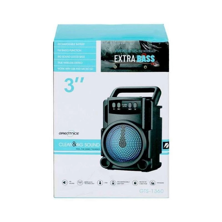 از ویژگی های جذاب اسپیکر Greatnice 1360، میتوان به امکان پخش و اتصال با بلوتوث، فلش و SD Card اشاره کرد. همچنین، با استفاده از کلیدهای تعبیه شده روی دستگاه، شما میتوانید علاوه بر انتخاب موسیقی مورد علاقهاتان بوسیله کلیدهای عقب و جلو، و نگهداشتن آنها برای کاهش یا افزایش میزان صدا، از کلید M یا Mode برای دریافت امواج رادیویی FM و گوش دادن به رادیو نیز استفاده کنید.
