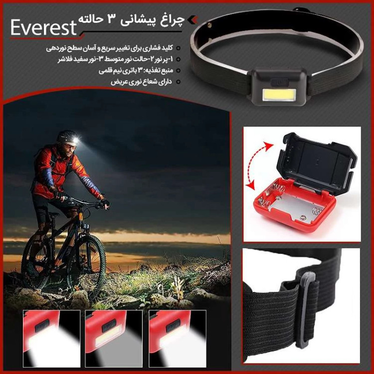 چراغ پیشانی 3 حالته Everest