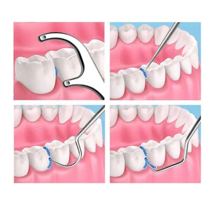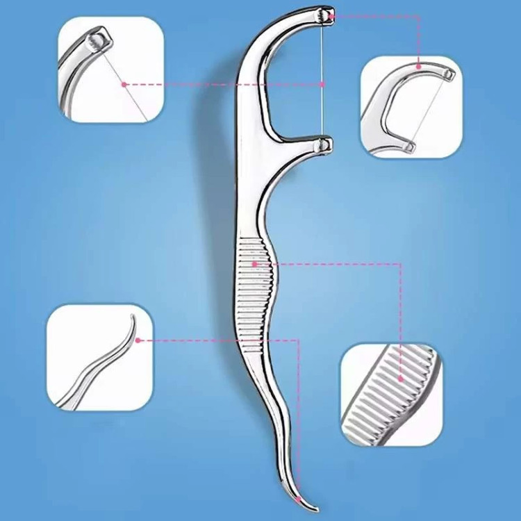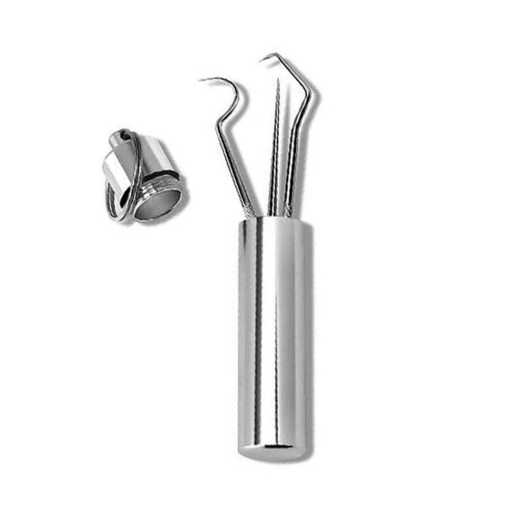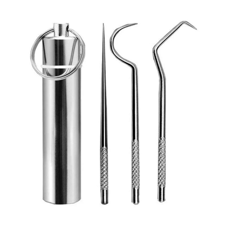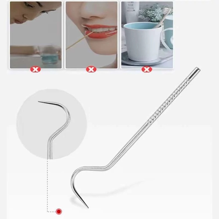 یکی از ابزارهای موجود در این مجموعه، خلال استیل مخصوصی است که بهراحتی میان دندانها نفوذ کرده و بقایای غذا، شیرینی و سایر خوراکیها را از بین میبرد.