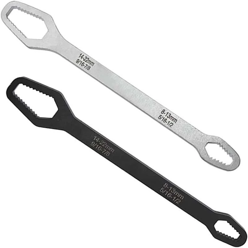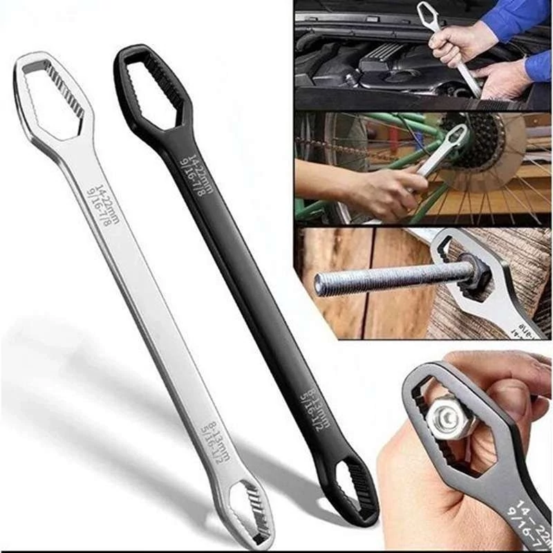 آچار دو سر رینگی همه کاره 8-22 مشکل بیشتر عاشقان ابزار و تمام فنی کاران را حل کرده است ، همیشه همراه داشتن یک کیف ابزار کامل بسیار دشوار و سنگین هست و در بیشتر مواقع آچار ها بیشترین وزن یک کیف ابزار به خود اختصاص می دهند ، آچار همه کاره دوسر رینگی 8-22 با دارا بودن 14 سایز از مهره بهترین جایزین ست های سنگین آچار های رینگی می باشند. با خرید آچار همه کاره دوسر رینگی دیگر از ناقص شدن آچارهای خود در زمان جابجایی کیف ابزار آسوه هستید، نیازی به حمل تعداد زیاد آچار ندارید و تنها یک آچار برای شما کفایت می کند. آلیاژ آچار همه کاره دوسر رینگی 8-22 از بالاترین کیفیت فولاد ساخته شده تا در برابر رطوبت و سایش مقاومت لازمه را داشته باشد. بهترین گزینه برای داخل ماشین و کسانی که کمپ می کنند یا دوچرخه سوارانی که فضای کمی برای حمل کیف ابزار های بزگ و پر سروصدا ندارند می باشد .