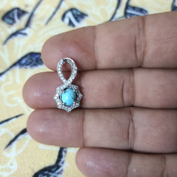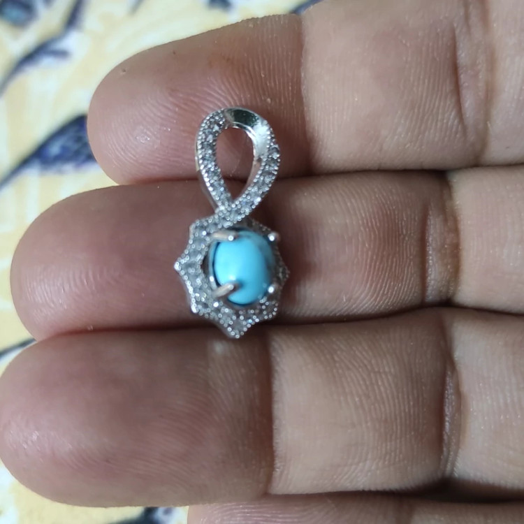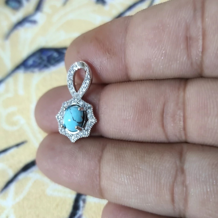 آویز گردنبند نقره با عیار 925 و سنگ فیروزه نیشابور اصل معدنی .یکی از بهترین انتخاب هایی است که بسیار چشم نواز و جذاب می باشد جالب است بدانید که نقره موجب جریان بهتر گردش خون در بدن می شود که در نتیجه این گردش منظم خون باعث تنظیم فشار خون نیز می شود. بنابراین آویز گردنبند نقره بسیار مورد توجه قرار گرفته است.این فلز گرانبها برخلاف طلا که استرس آور می باشد. به شدت آرام بخش بوده و موجب آرامش شخص استفاده کننده می شود. به همین دلیل به افرادی که مضطرب هستند و هیجان بالایی را تجربه می کنند استفاده از نقره پیشنهادمی گردد.هچنین برای تقویت نقاط مختلف بدن و برقراری تعادل و هماهنگی در آن ها بسیار مفید است همچنین اثری فراوان دارد بر زدودن انرژی های منفی از محیط سبب پاکسازی هاله ای از انرژی های منفی می شود. فیروزه برای تعالی روحی و شادابی و آرامش آن و بر طرف شدن غم و غصه و ناراحتی های روحی بسیار موثر است.