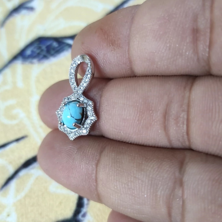 آویز گردنبند فیروزه نیشابور با قاب نقره کد0971