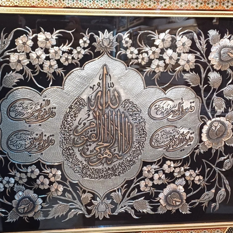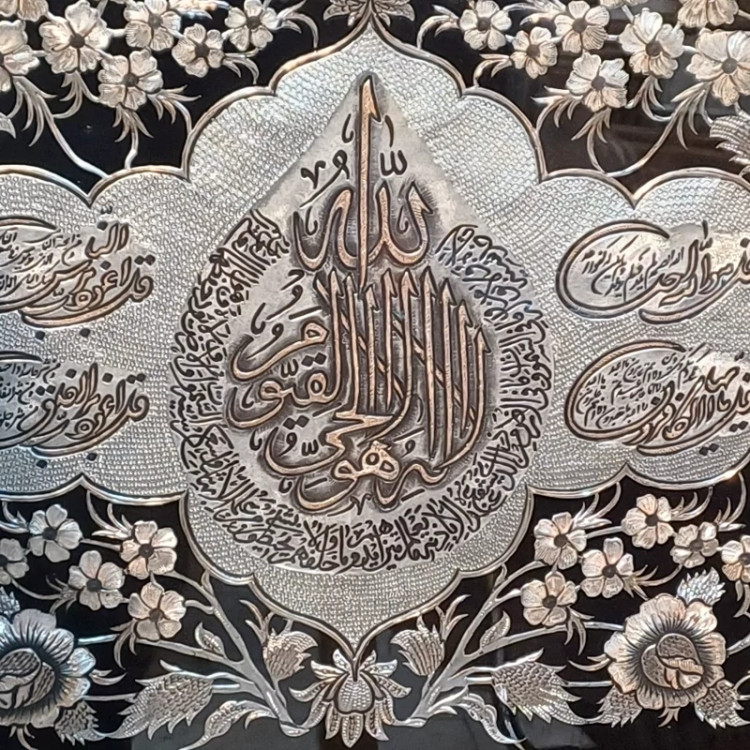 تابلو خاتمکاری آیه الکرسی و چهار قل قلمزنی