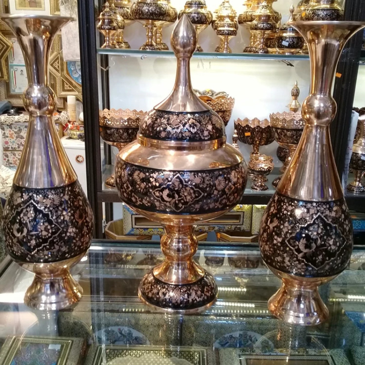 ست شکلات خوری و گلدان بزرگ حکاکی