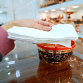 2️⃣سپس یک دسته دستمال از روی جعبه (به ترتیب چیدمان خود دستمال کاغذی) مطابق عکس در جادستمال مسی میگذاریم