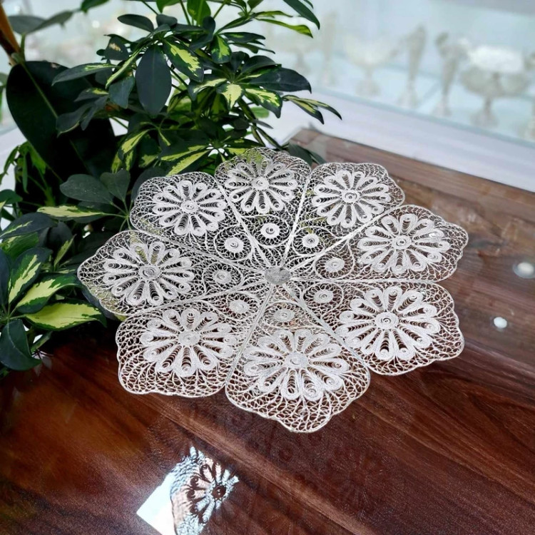 ظرف ملیله کاری شیرینی خوری ملیله کاری سایز متوسط با آبکاری نقره (خرید مستقیم و بدون واسطه از تولیدی)