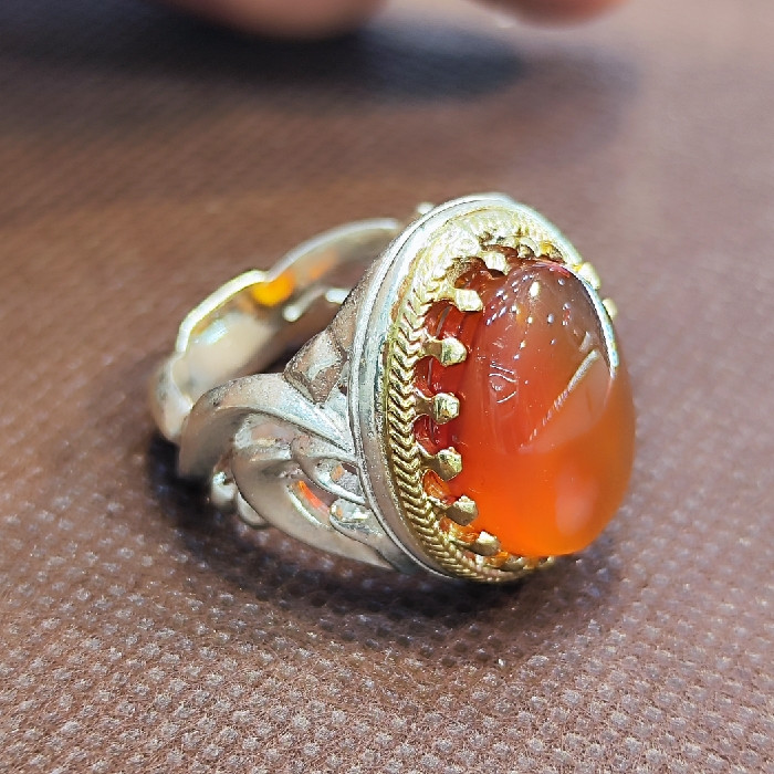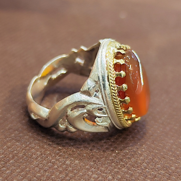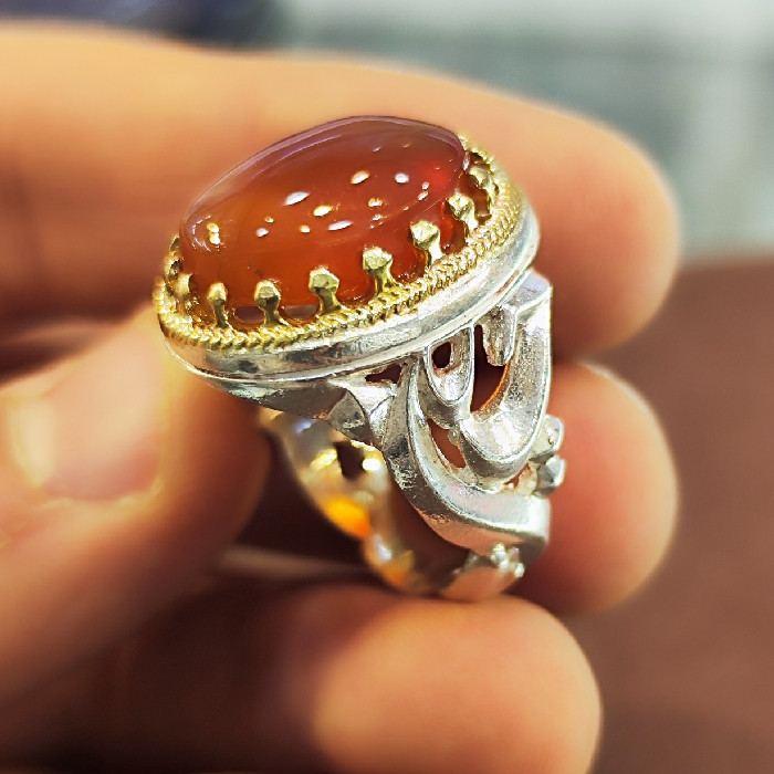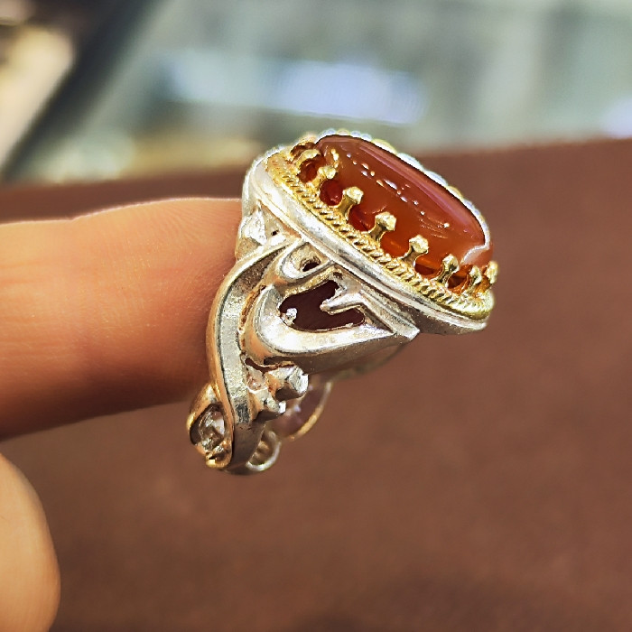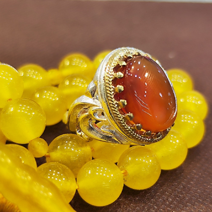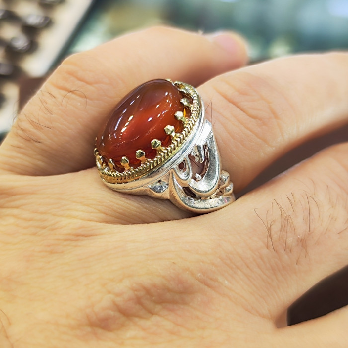 انگشتر نقره مردانه مدل سنگ عقیق یمانی کد 77