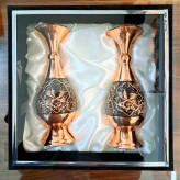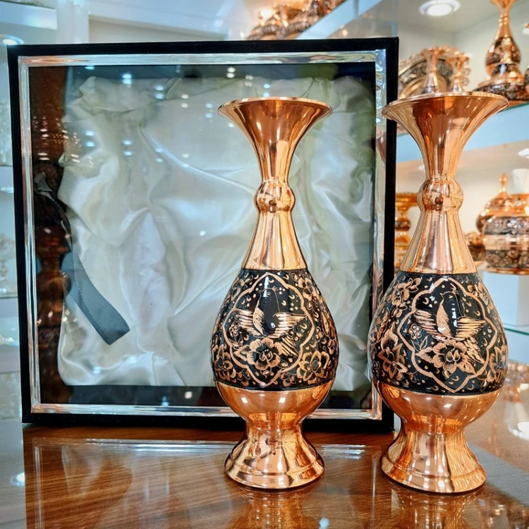 پک دو عددی گلدان مس الماس تراش اعلاء سایز بزرگ به همراه باکس هدیه نفیس با روکش مخمل