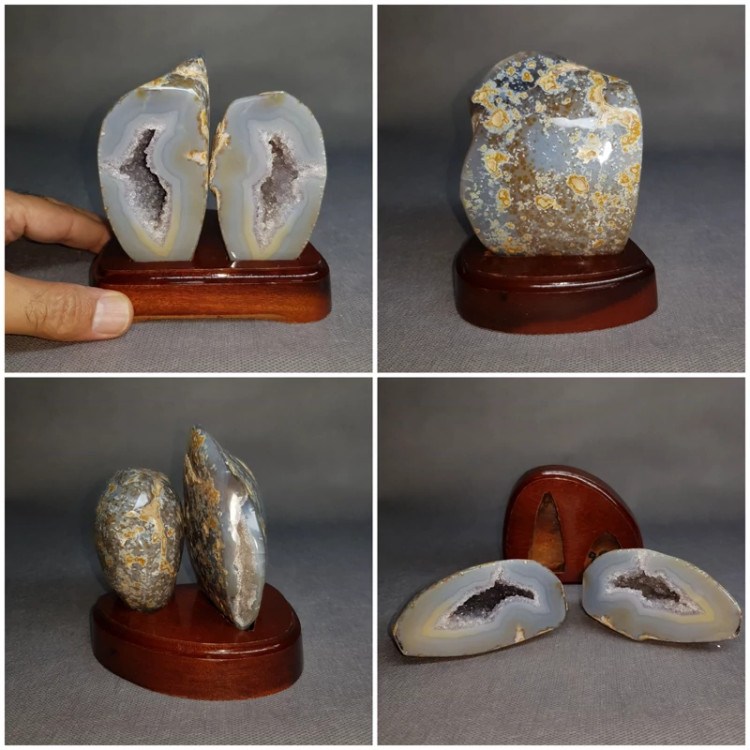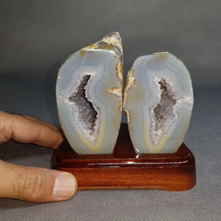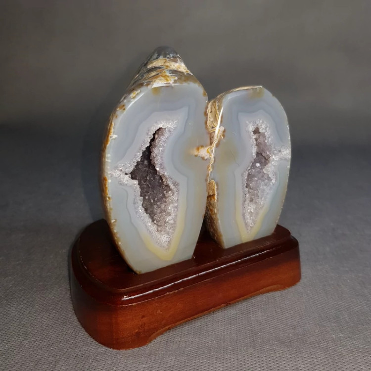 گوهر سنگ ژئود برزیلی با پایه چوبی نفیس