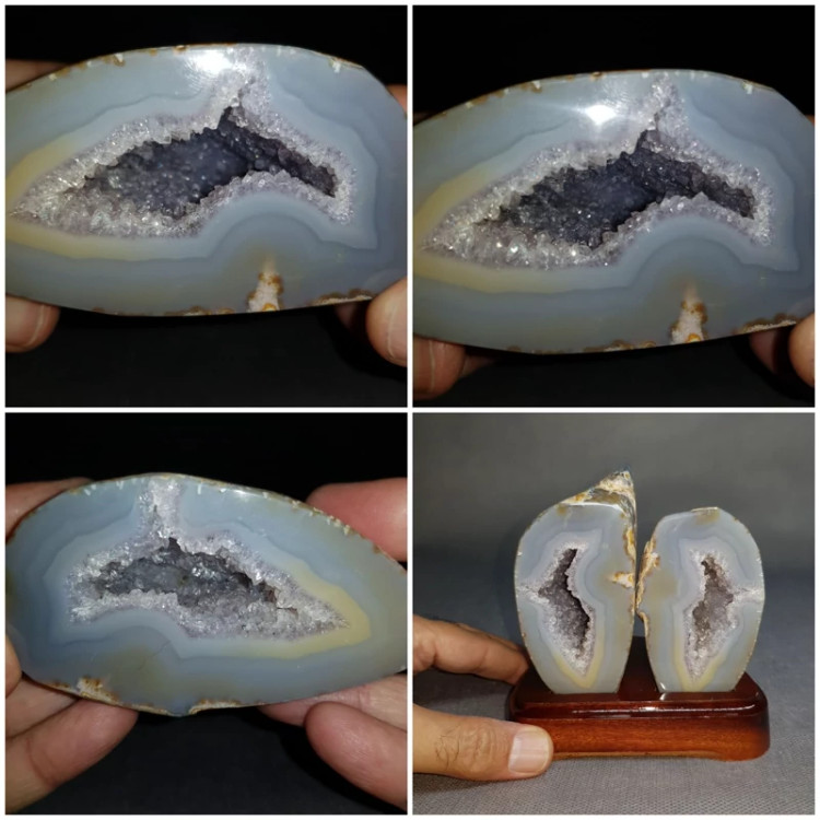 گوهر سنگ ژئود برزیلی روی پایه چوبی نفیس کد 54