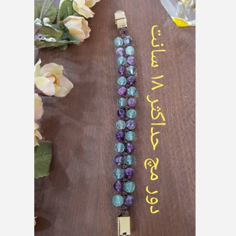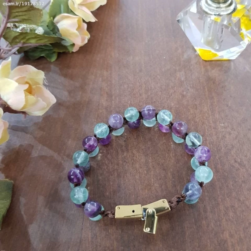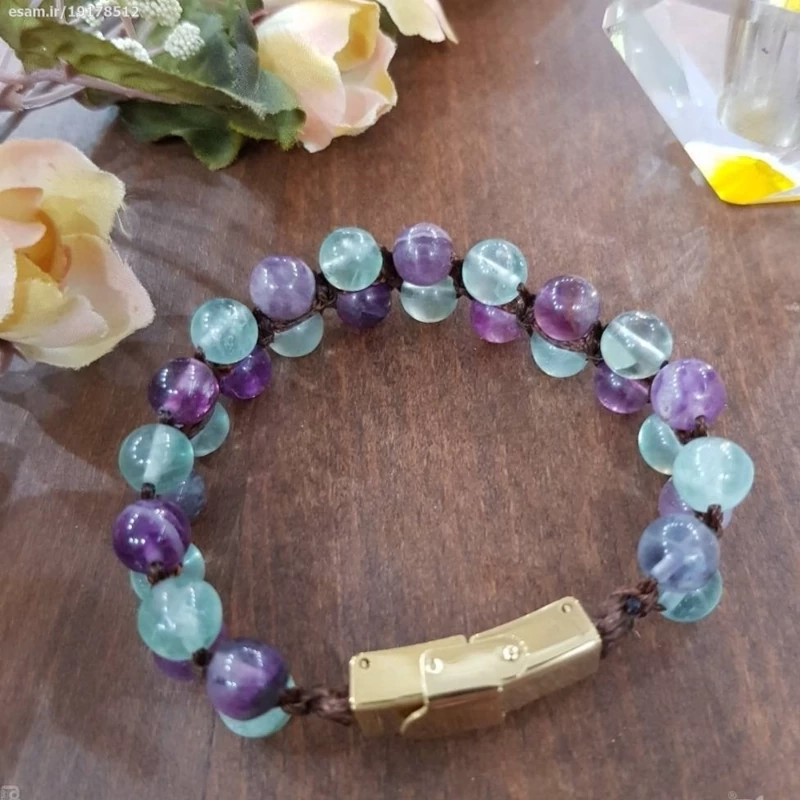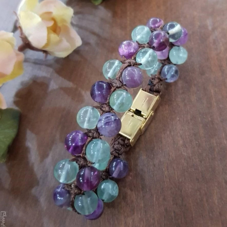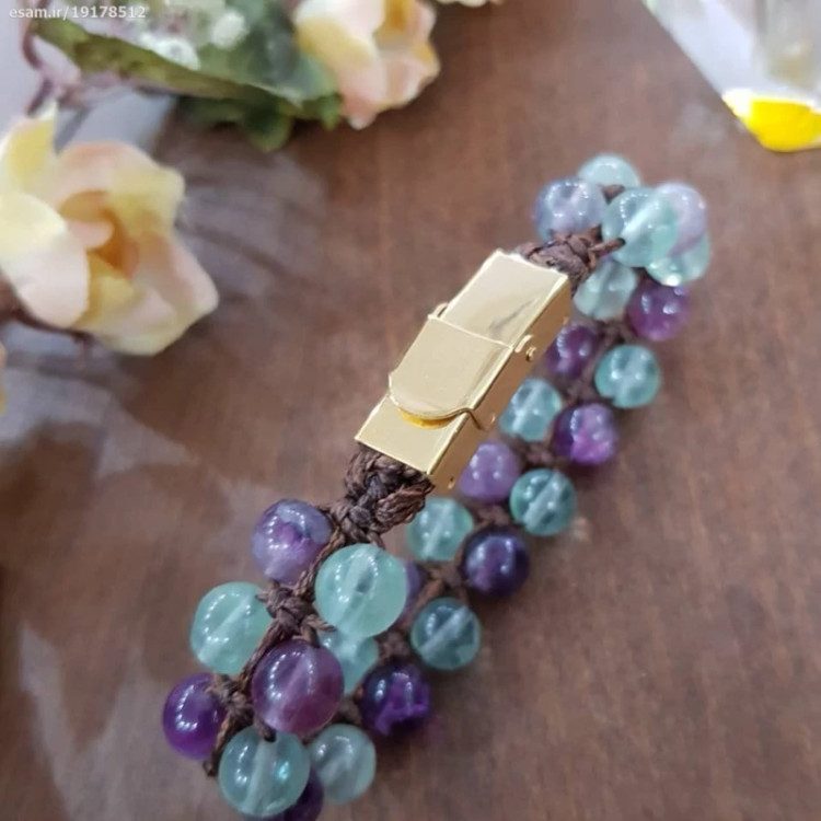 این دستبند زیبا که تماما از مهره های سنگ تراش خورده ی سنگ فلوریت معدنی ساخته شده رنگهای معروف فلوریت را در خود جمع کرده که کم نظیر میباشد.