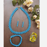 ست گردنبند و گوشواره و دستبند زیبا به رنگ فیروزه ای و آبی رویال.