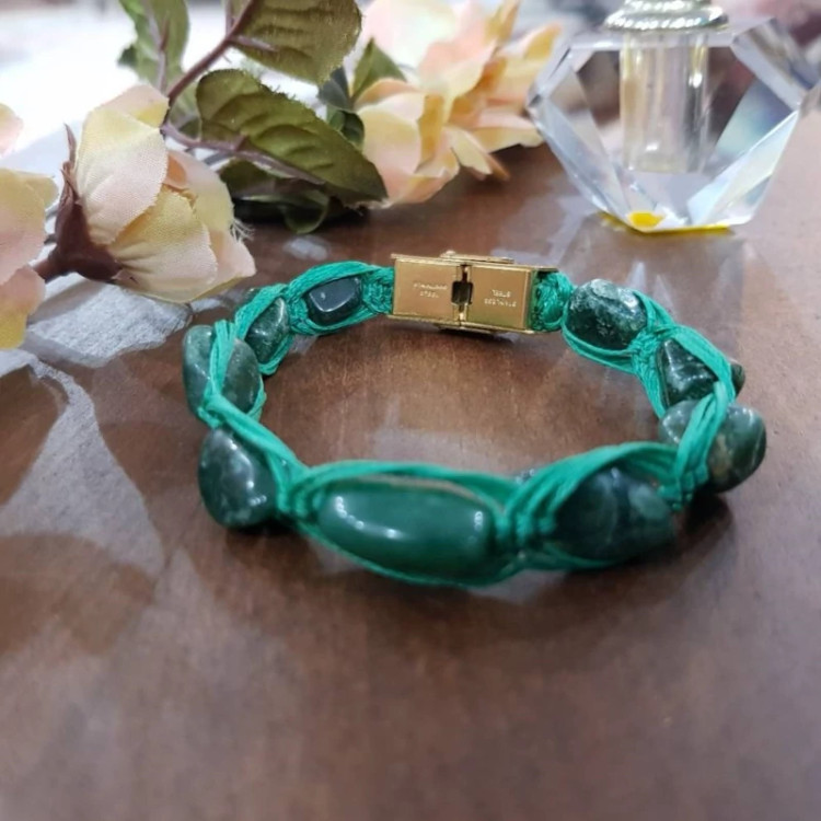 دستبند سنگ دلربا سبز اصل و معدنی با قفل ساعتی