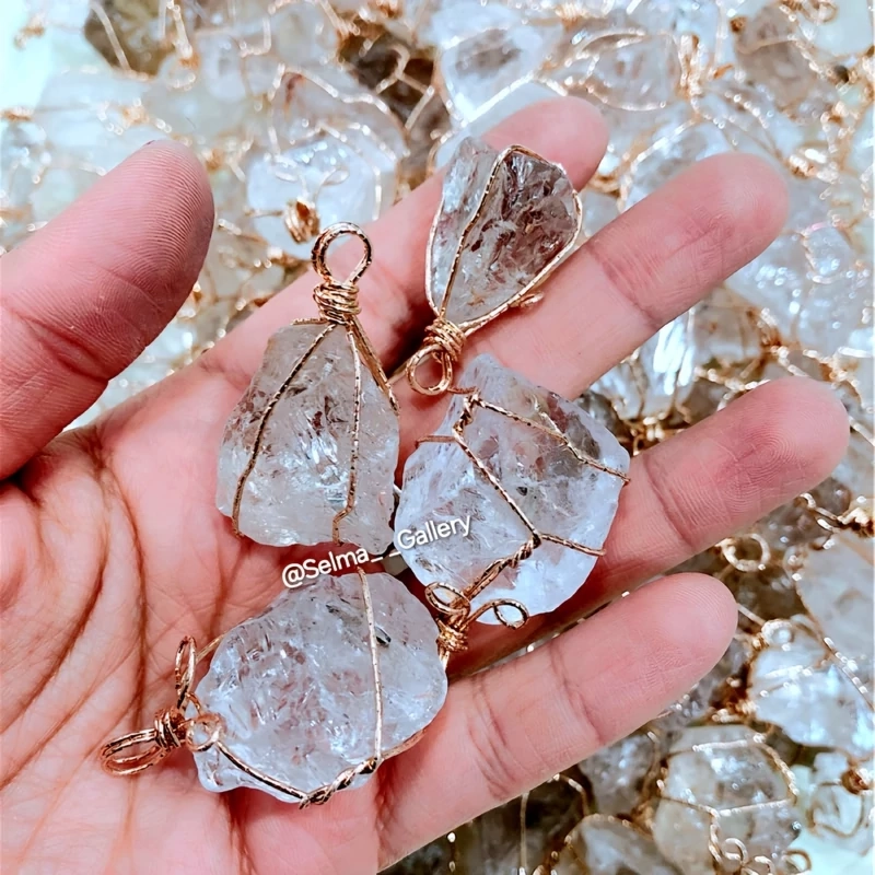 اویز کریستال کوارتز طبیعی گردنبند کوارتز شفاف اویز راف کوارتز سفید سنگ تاجیئ سنگ ماه تولد اویز راف کریستال سنگی سلما کرج
