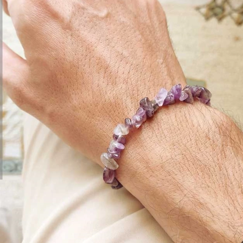 دستبند امیتیست چیپسی اصل دستبند سنگ آمیتیست خرد شده دستبند سنگ دفرمه امیتیست سنگ جذب دستبند فراوانی