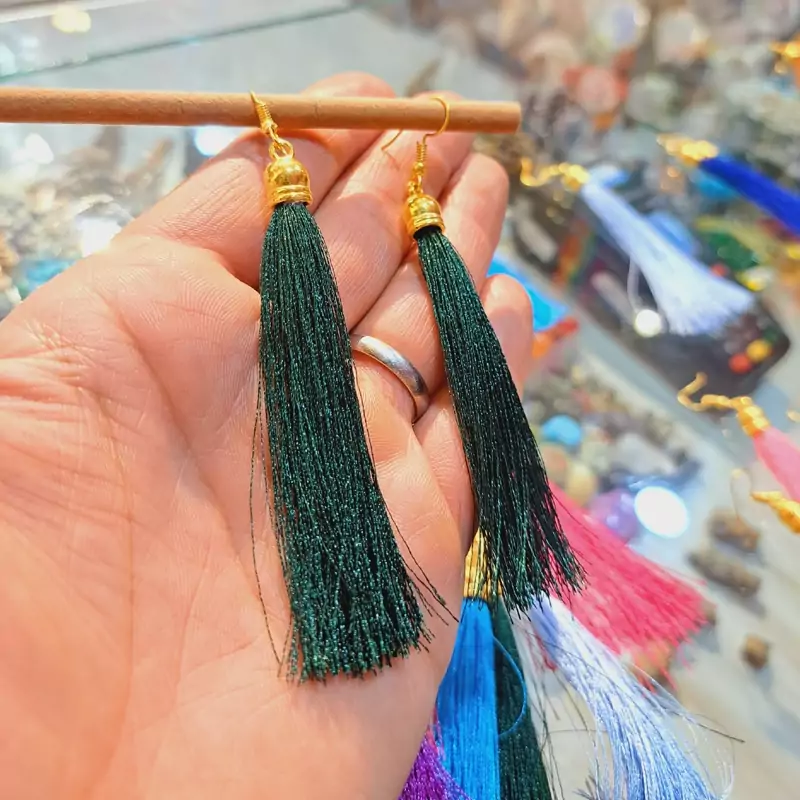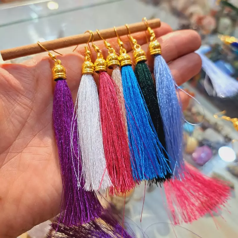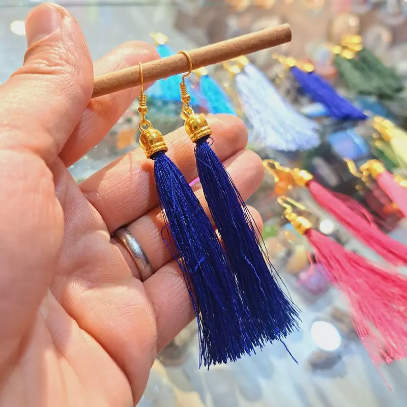 گوشواره ریش بابا 2عددی گشواره ریش بابا گوشواره دخترانه گوشوار ابی گوشواره مکرومه گوشواره یشمی اویز گوشواره ریش ریشی