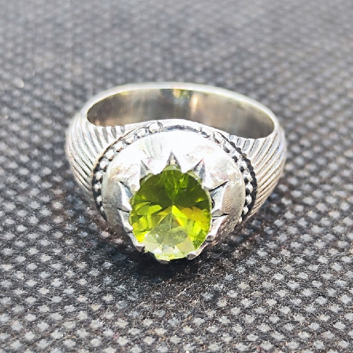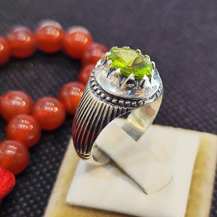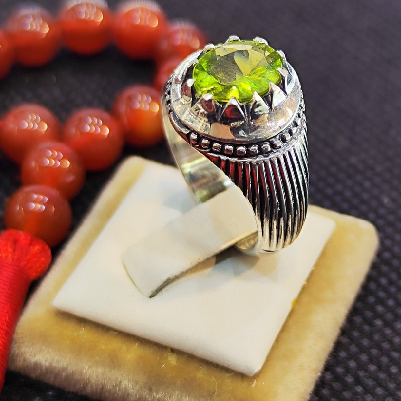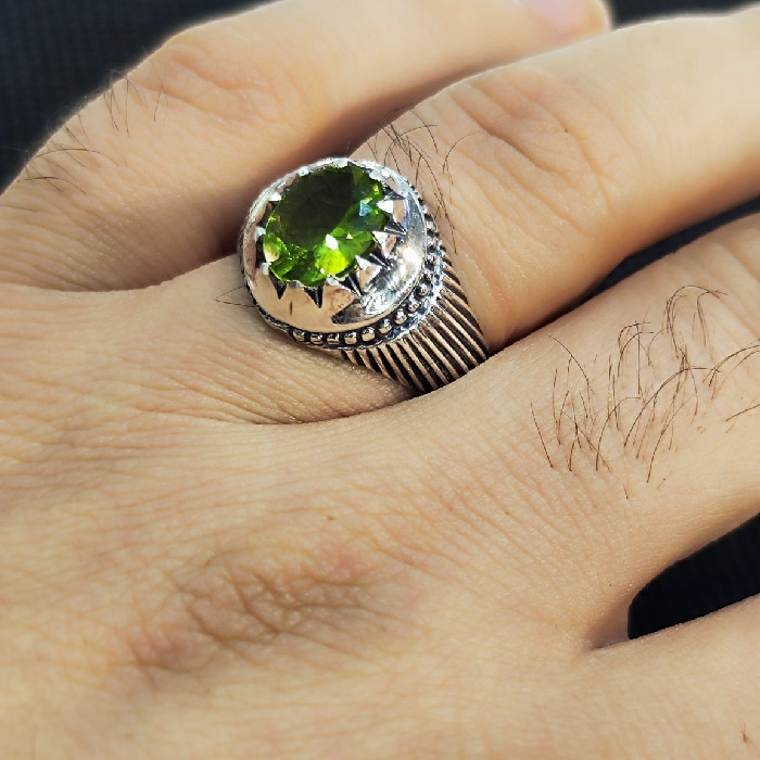 انگشتر نقره مردانه مدل سنگ زبرجد آفریقایی کد 40