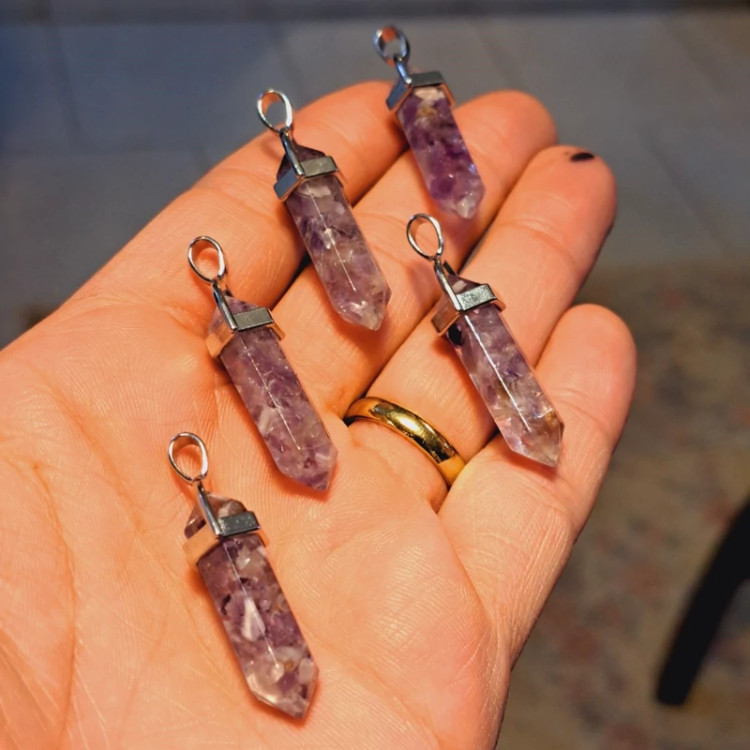 🔴آویز سنگ آمیتیست پاندول یا منشوری