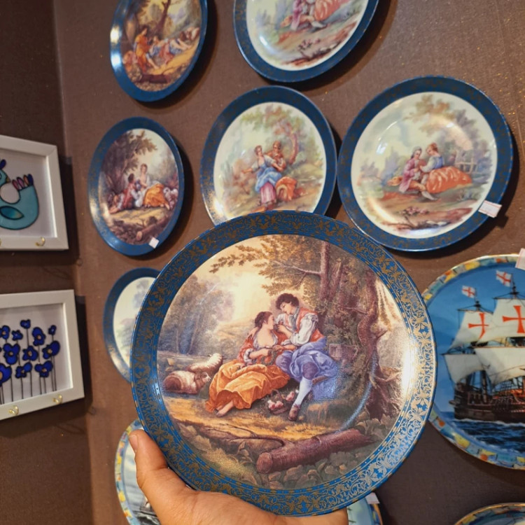 دیوارکوب قدیمی وارداتی 21سانت بشقاب لیلی و مجنون بشقاب دیوارکوب آلمانی بشقاب چینی قدیمی بشقاب عتیقه نقاشی بشقاب قلم ابی