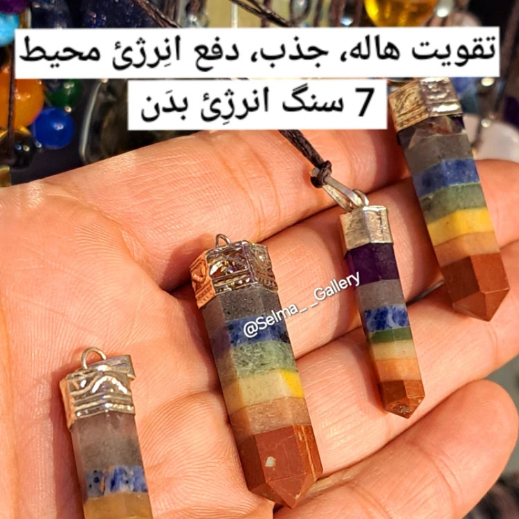 اویز منشور 7سنگ انرژیئ بزرگ اویز منشور سنگی اصل اویز هفت سنگ پاکسازی اویز پاندول سنگی اصل فروشگاه سنگ شاقول سلما گالری