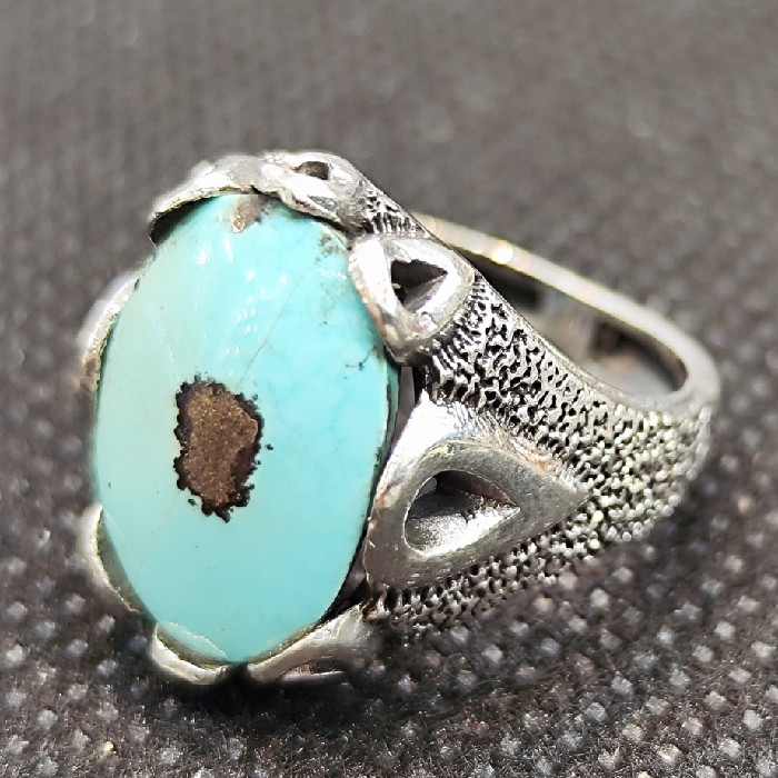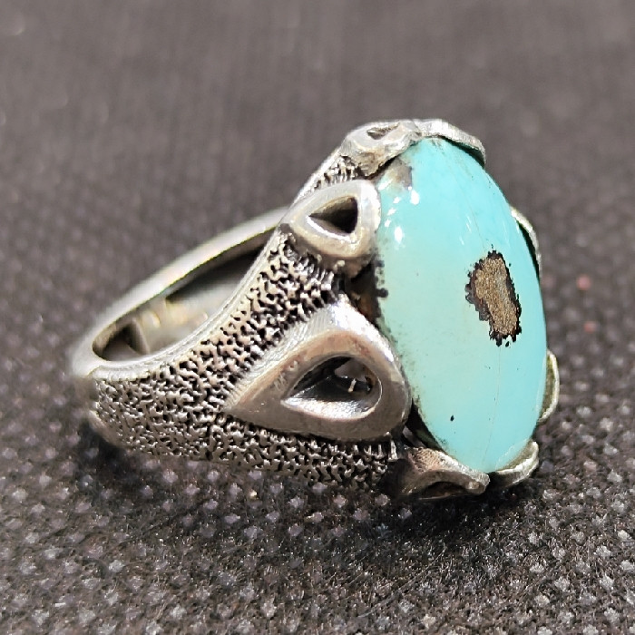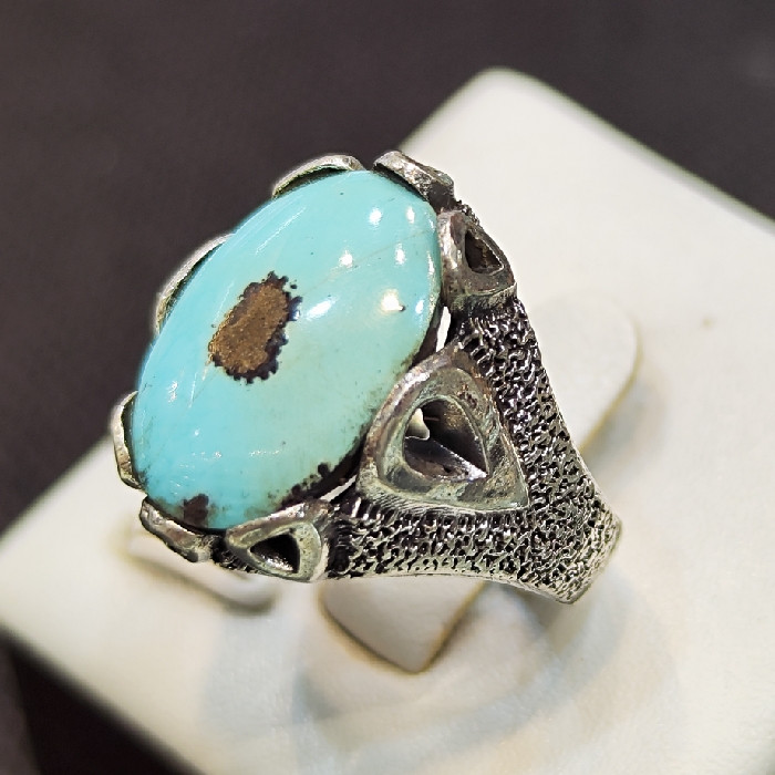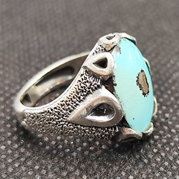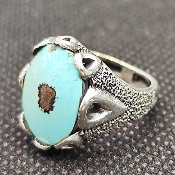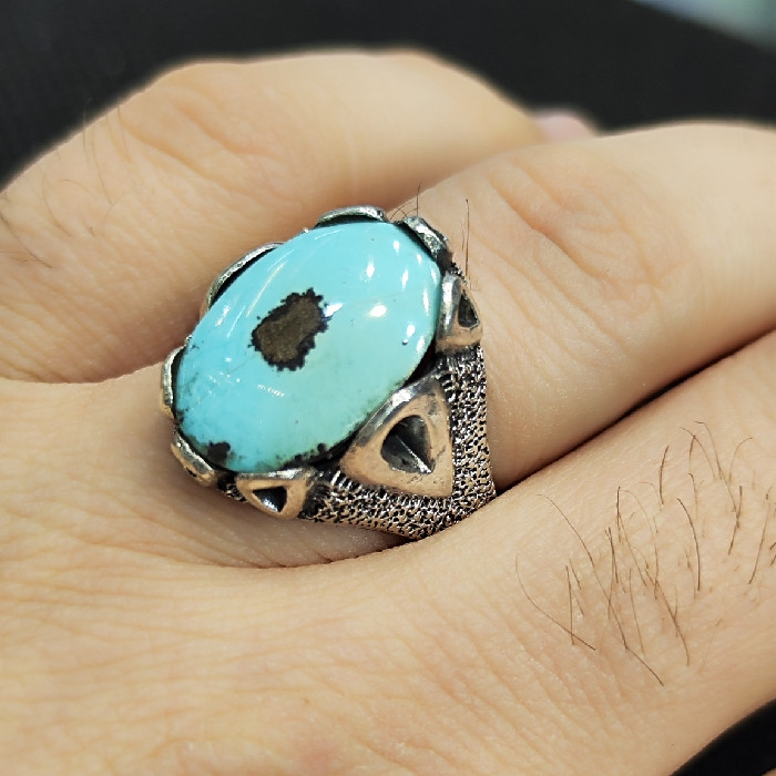 انگشتر نقره مردانه مدل سنگ فیروزه نیشابور کد 1298
