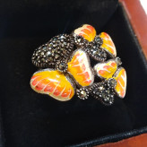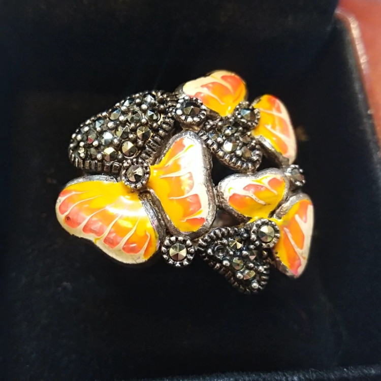 انگشتر زنانه ی طرح پروانه رکاب منقش به نگین مارکازیت