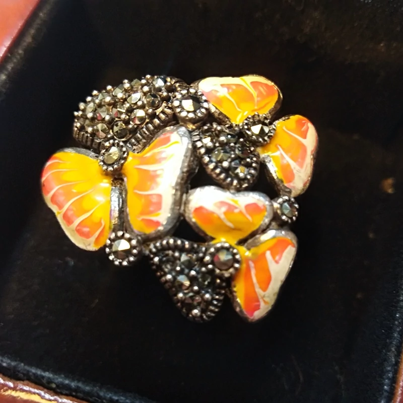 انگشتر زنانه ی طرح پروانه رکاب منقش به نگین مارکازیت