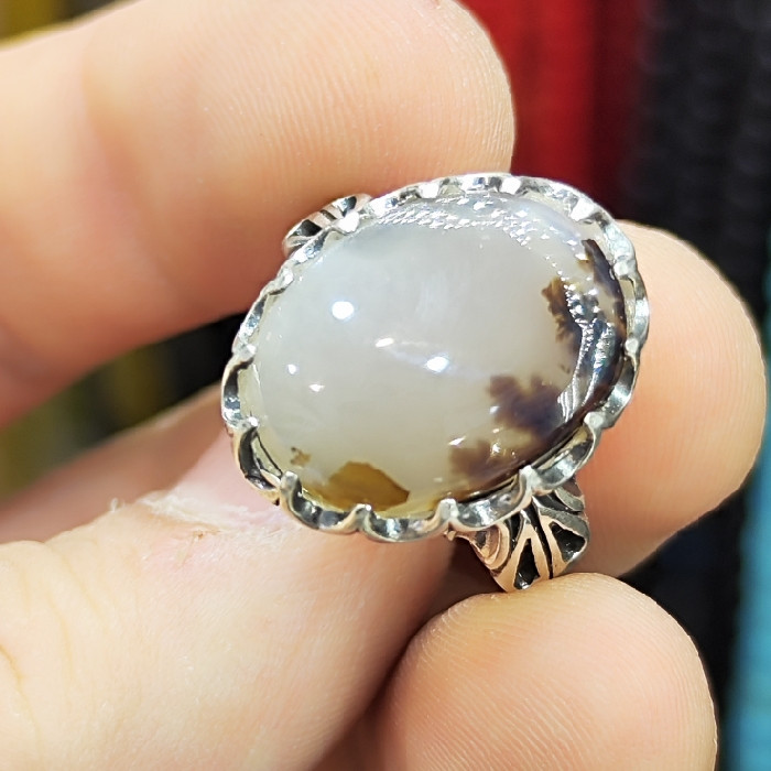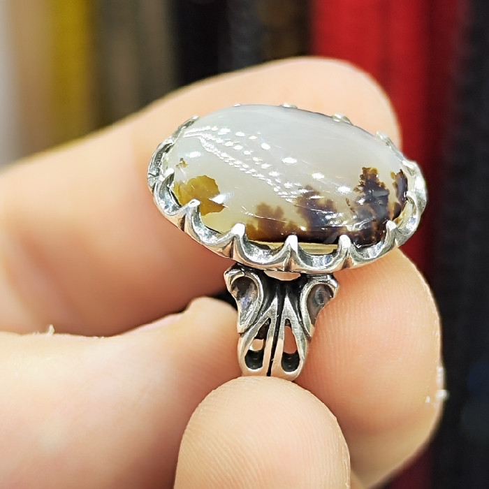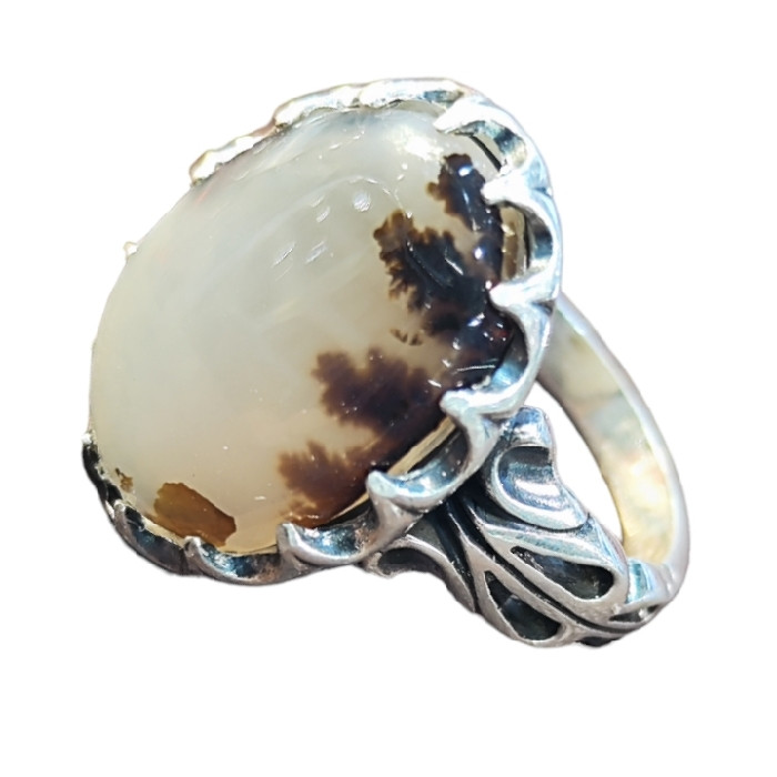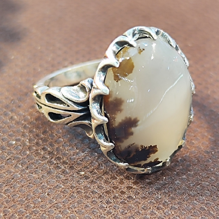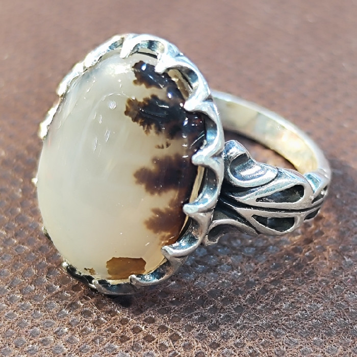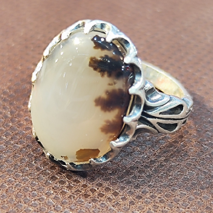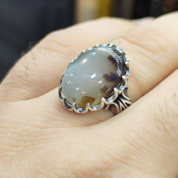 انگشتر نقره مردانه نقره جات بافندگان مدل عقیق شجر کد 33
