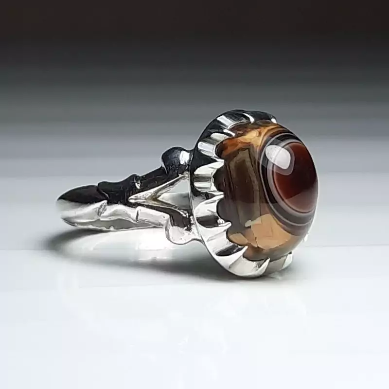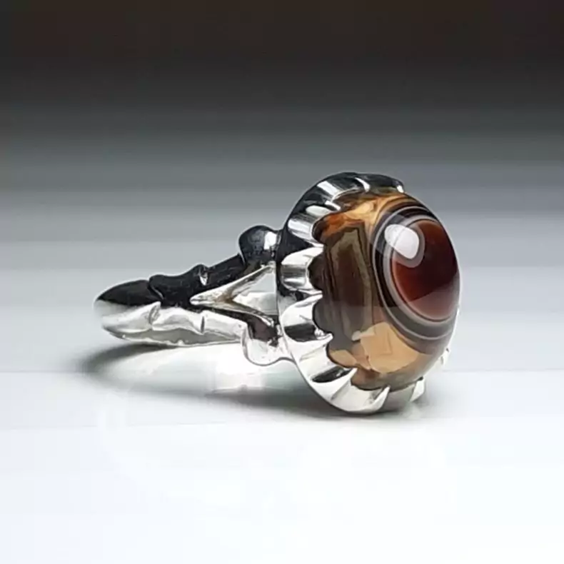 انگشتر نقره عیار استاندارد 925 باباقوری خوشرنگ میزان طوقدار اصل معدنی