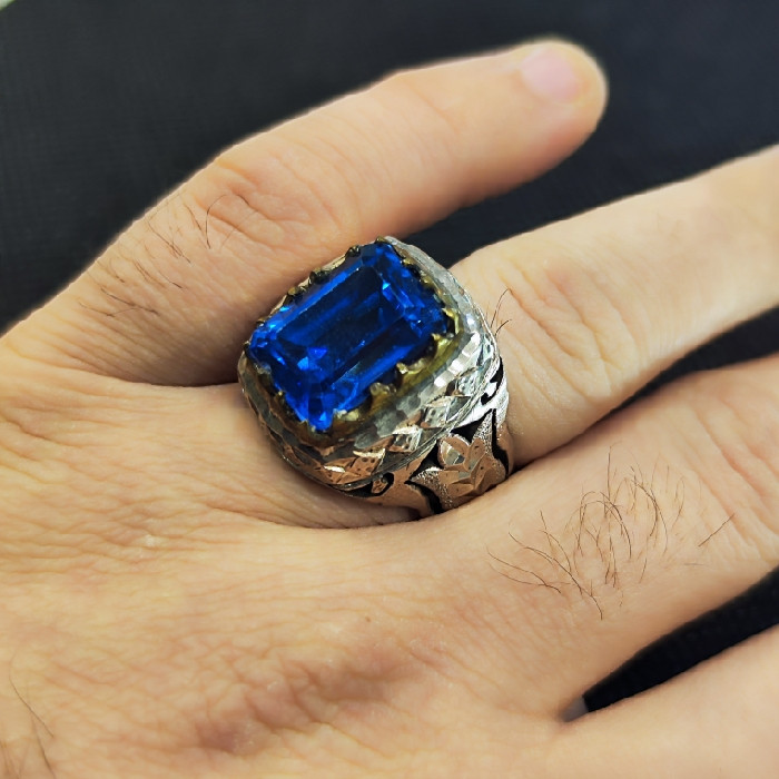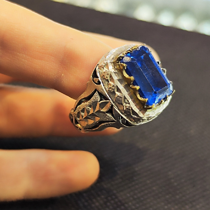 انگشتر نقره مردانه مدل سنگ توپاز سوییسی کد 355