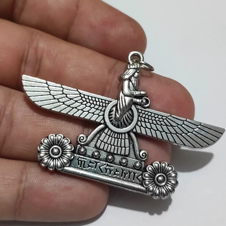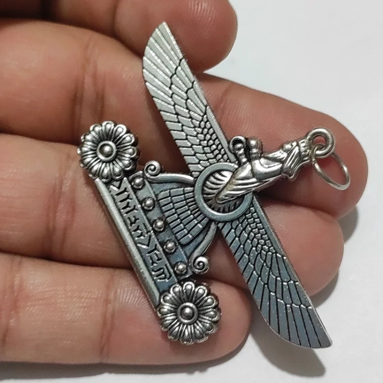 گردنبندآویز فربهر یا فروهر طلاروس آبکاری نقره هخامنشی
