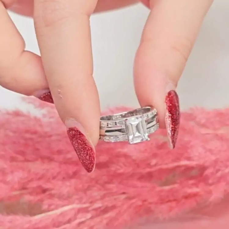 انگشتر زنانه نقره شاهکار مدل تک نگین امرالد عیار 925 آبکاری طلاسفید همراه با فاکتور رسمی