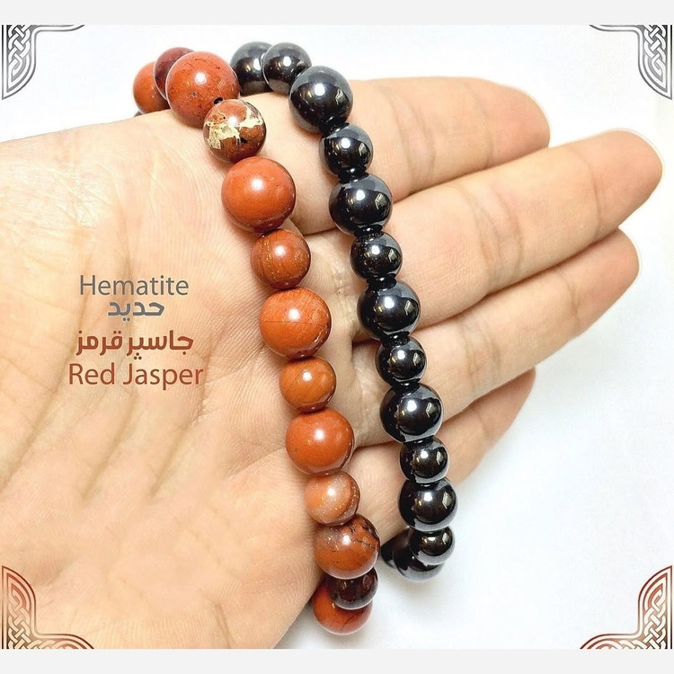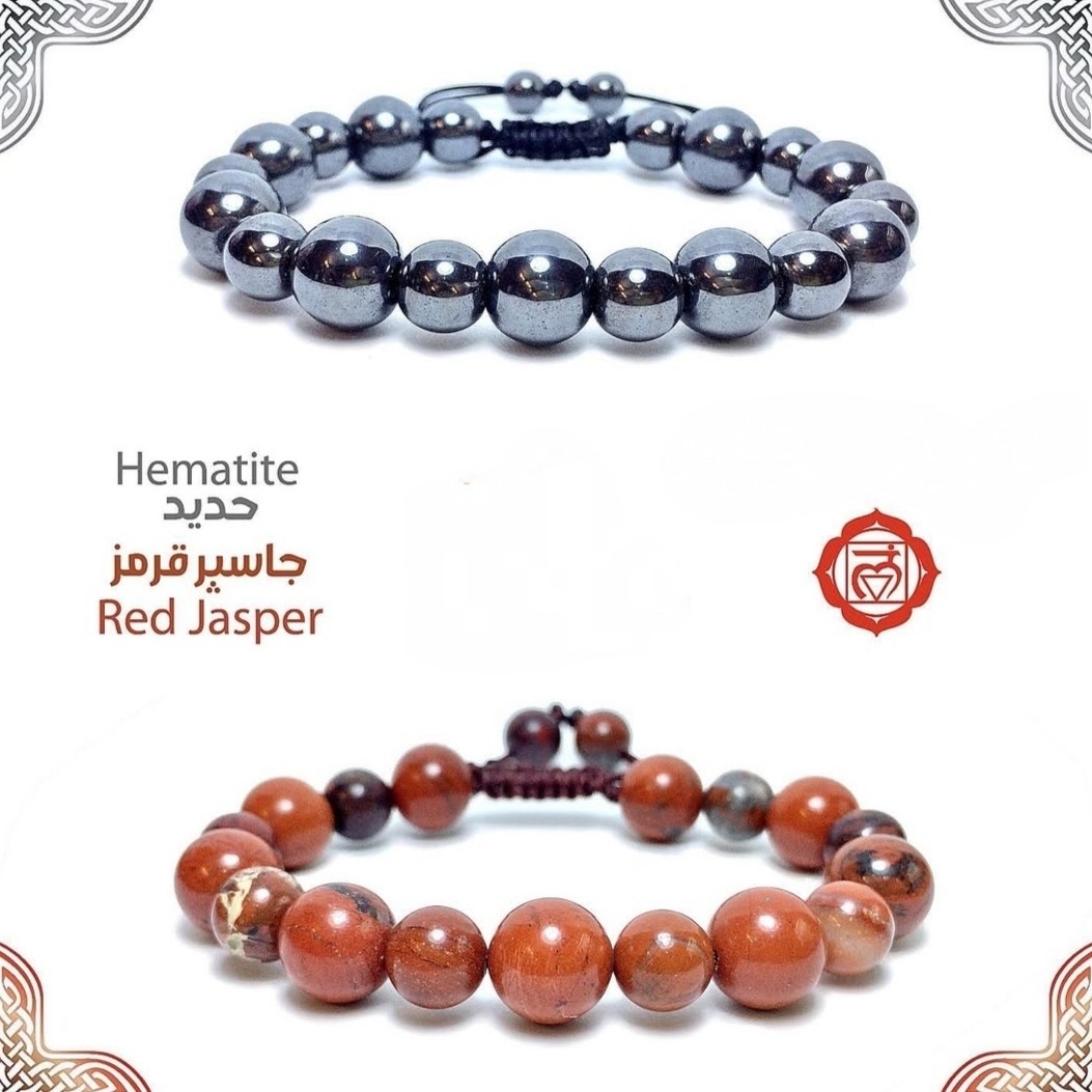 ست دستبند جاسپر سرخ + حدید ترکیب قدرت