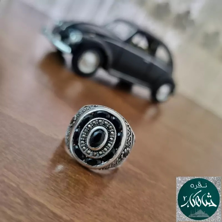 انگشتر نقره سلطنتی نگین مشکی مردانه ساخت ترکیه با عیار 925 اصل