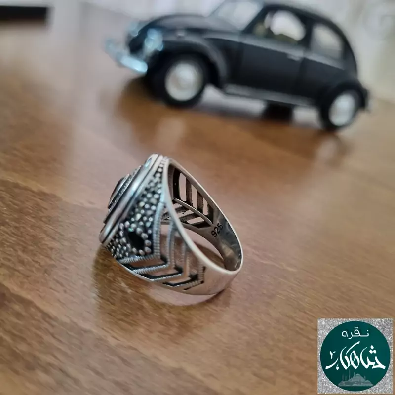 انگشتر نقره سلطنتی نگین مشکی مردانه ساخت ترکیه با عیار 925 اصل
