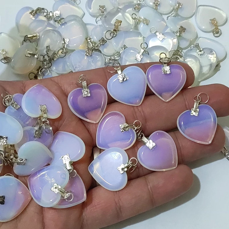 آویز اپال تراش قلب اپالین تلألو عالی اوپال
