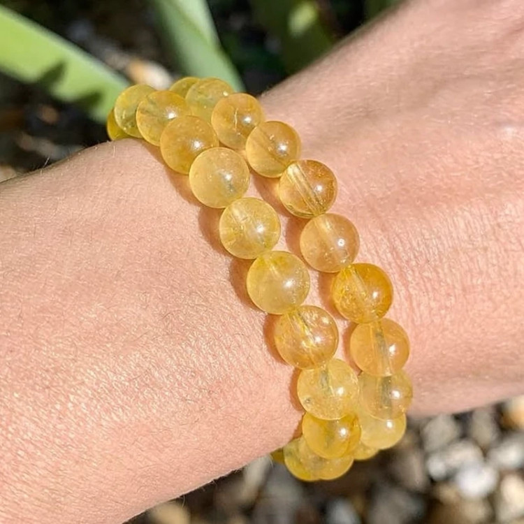 دستبند سیترین طلایی برزیلی اصلی سایز8 طبیعی کشی