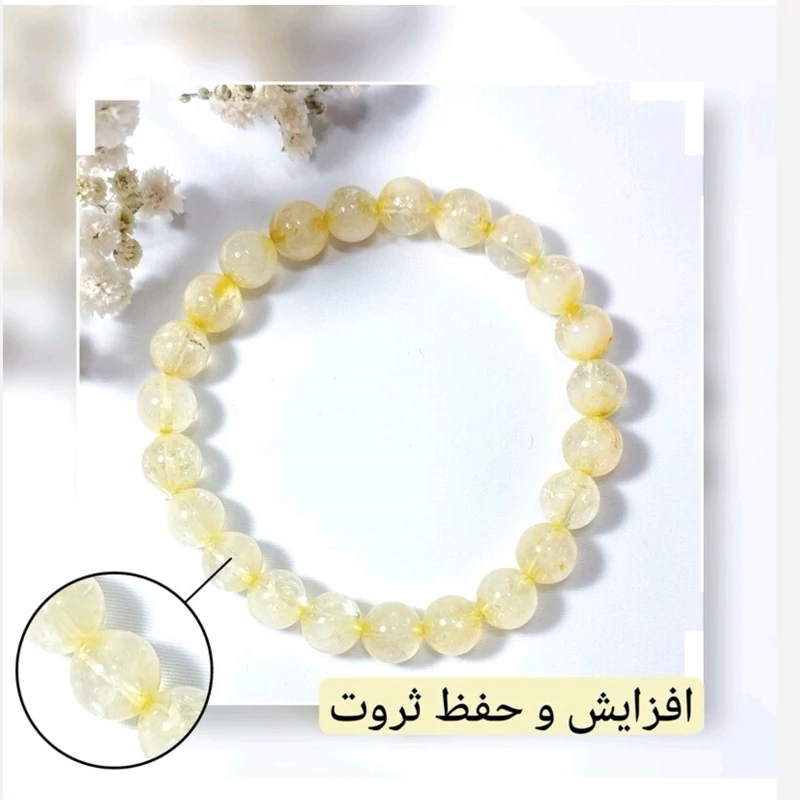 دستبند سیترین طلایی برزیلی اصلی سایز8 طبیعی کشی