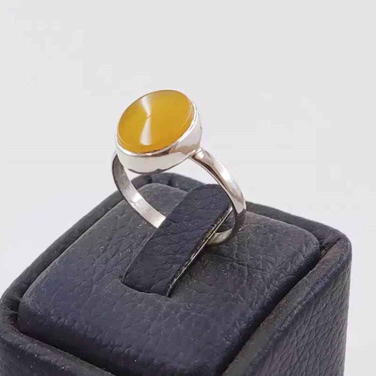 نگین عقیق زرد که زیر آن دعای شرف الشمس حک شده است