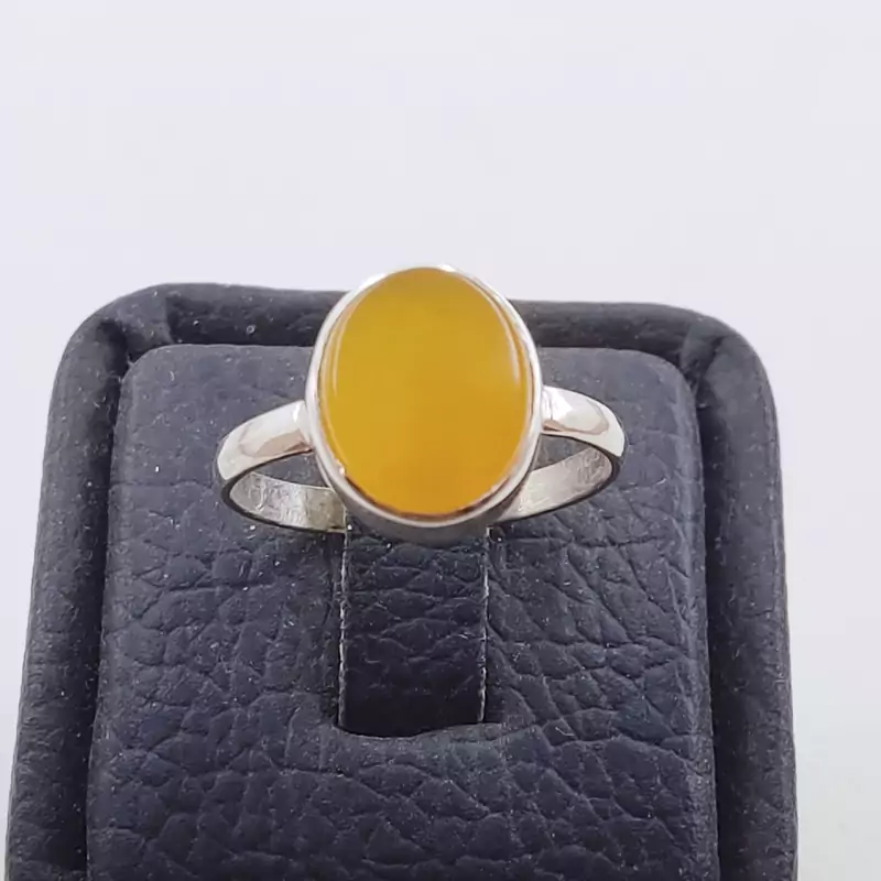 نگین عقیق زرد که زیر آن دعای شرف الشمس حک شده است