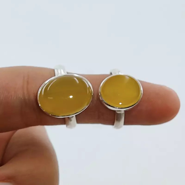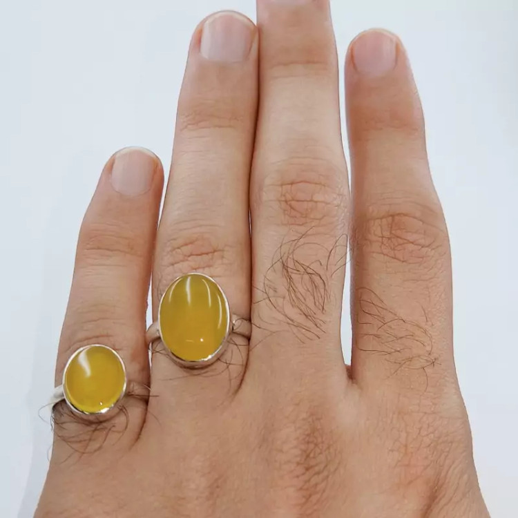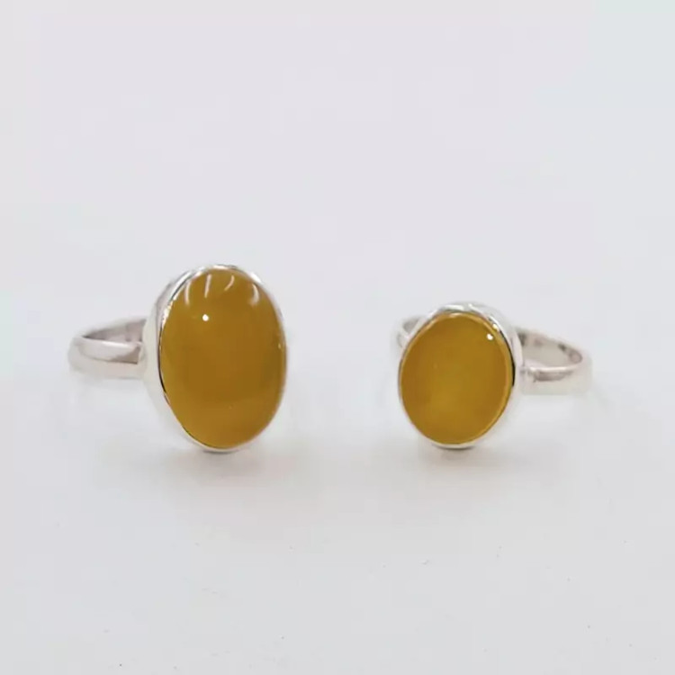 انگشتر نقره ست مردانه و زنانه نگین عقیق شرف الشمس (عقیق زرد) دارای حرز امام جواد روی پوست آهو و تربت کربلا