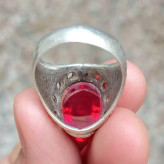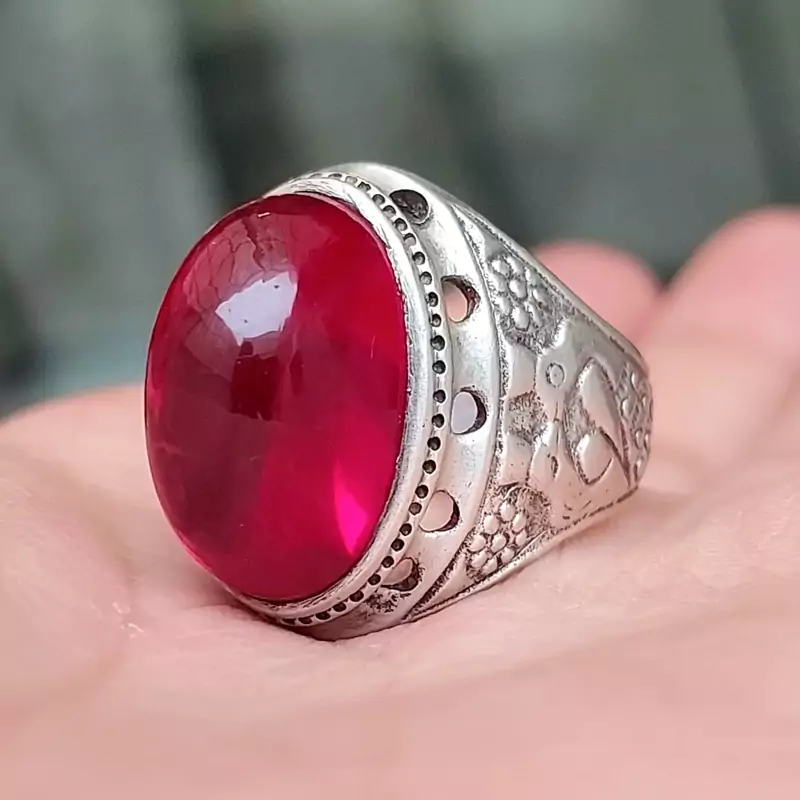 انگشتر یاقوت اناری کهنه با رکاب دست ساز مدل مرغی نقره 925