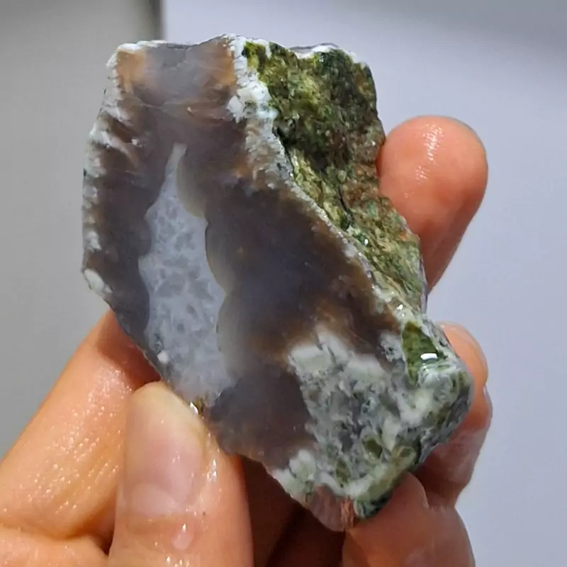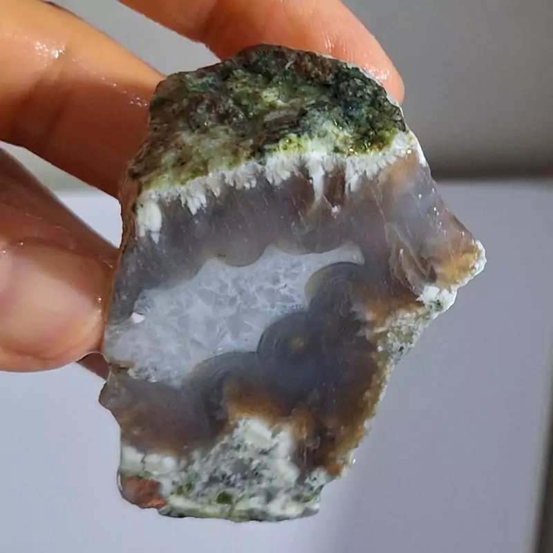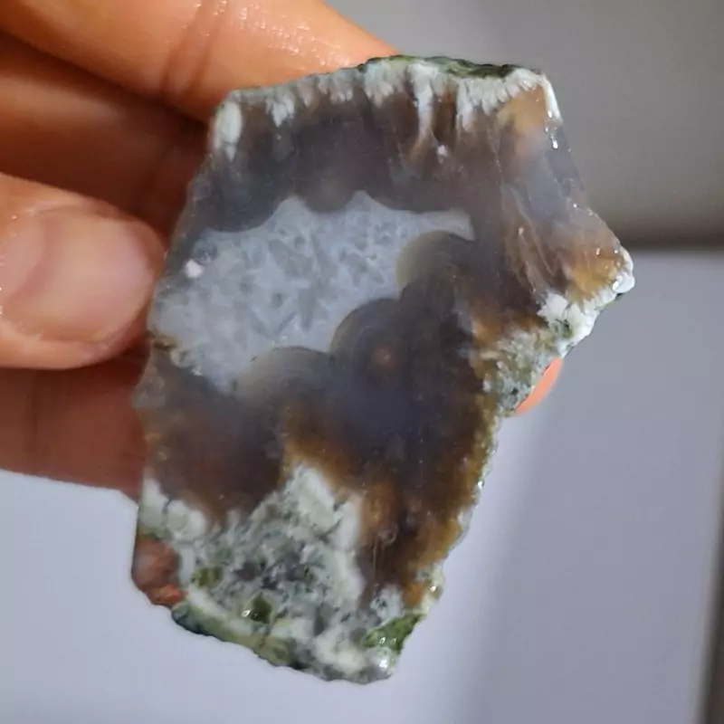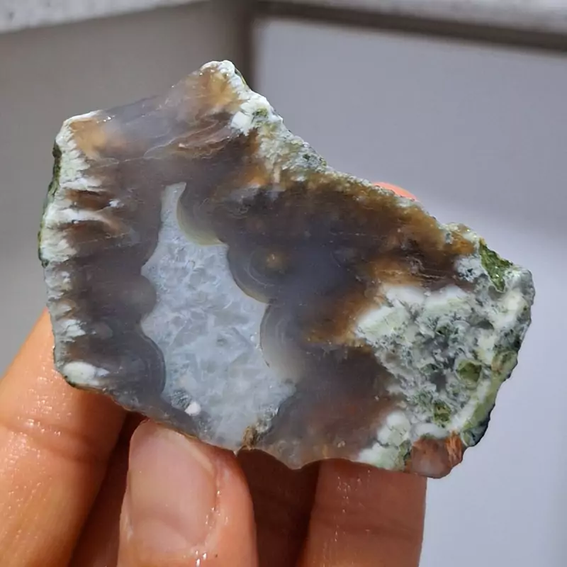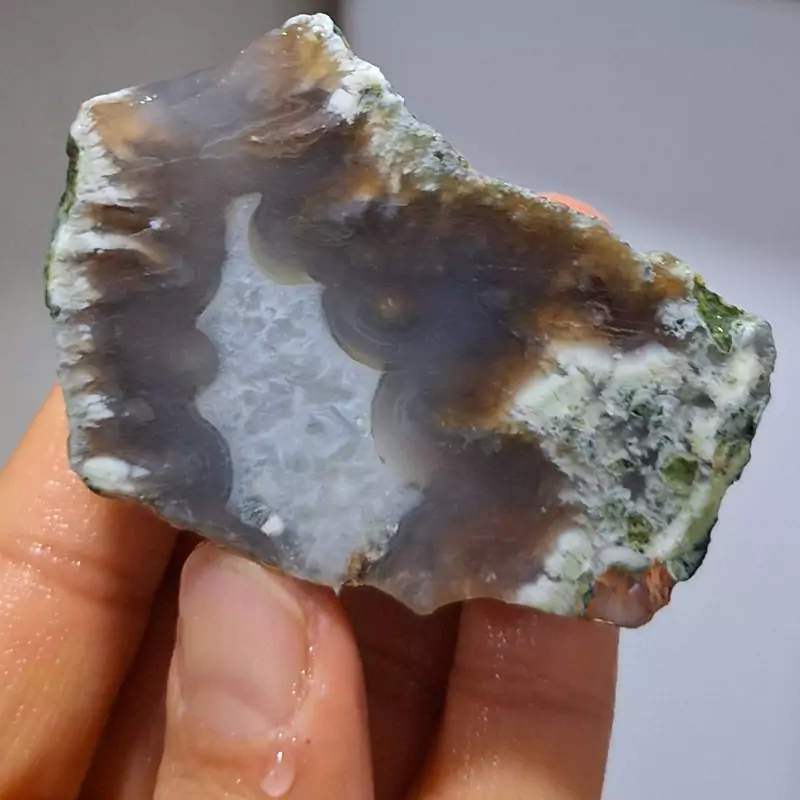 اسلایس سنگ راف عقیق سلیمانی سه بعدی حاشیه منظره شکوفه بسیار خاص و زیبا 100 در 100 طبیعی شاهکار خلقت کد 14020