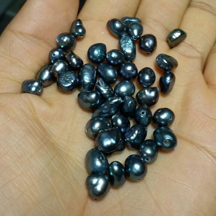 مروارید باروک مشکی مهره مروارید باروک مشکی پرورشی صد در صدطبیعی سایز متوسط قیمت برای یک عدد مهره درج شده