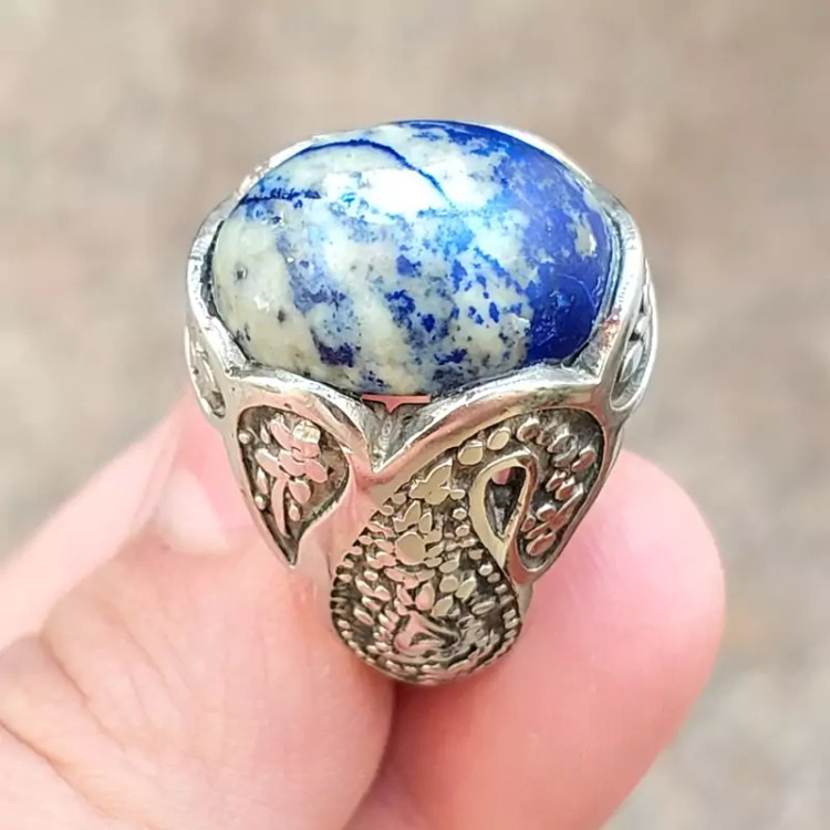 انگشتر لاجورد افغان زیبا با رکاب نقره عیار پایین