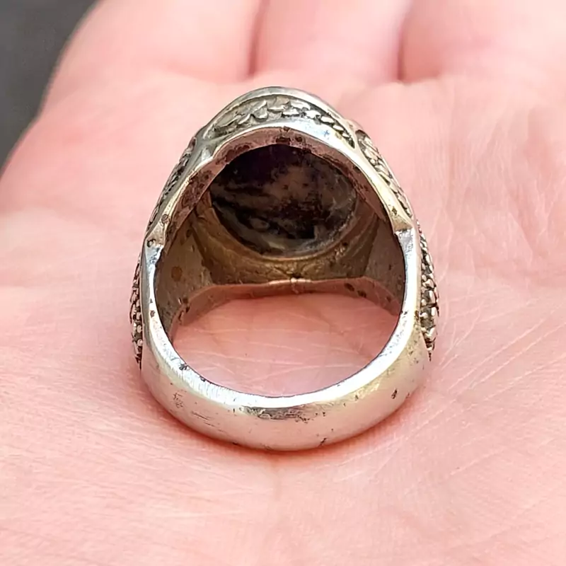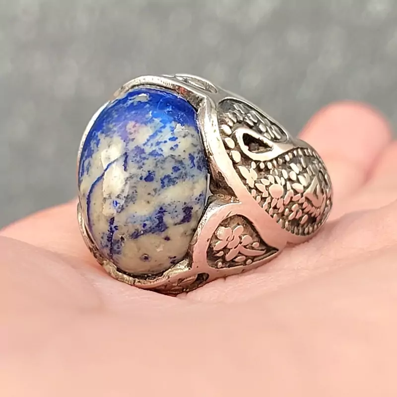 انگشتر لاجورد افغان زیبا با رکاب نقره عیار پایین