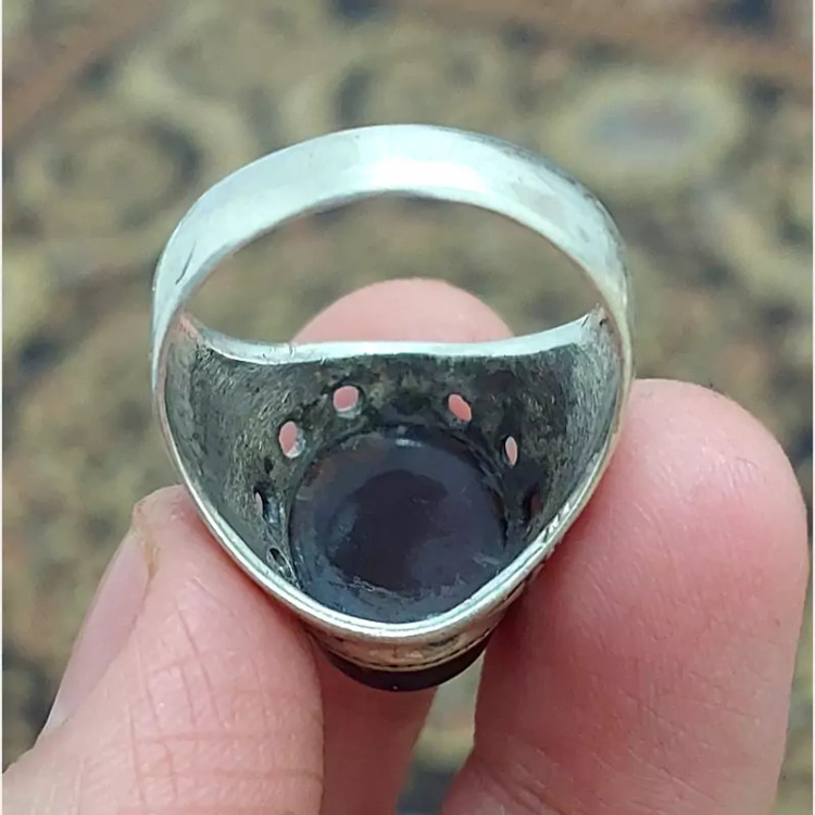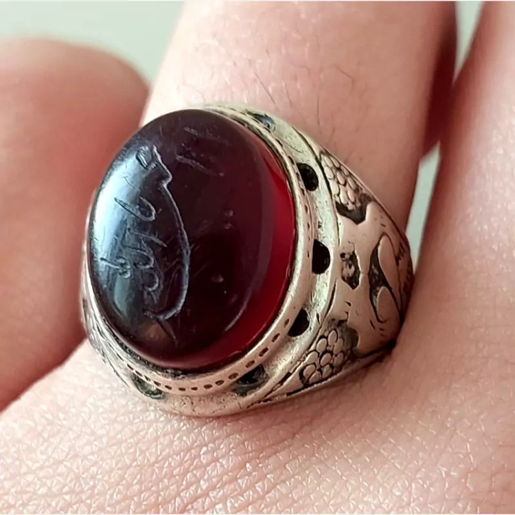انگشتر عقیق خونی کهنه با رکاب دستساز مرغی 925