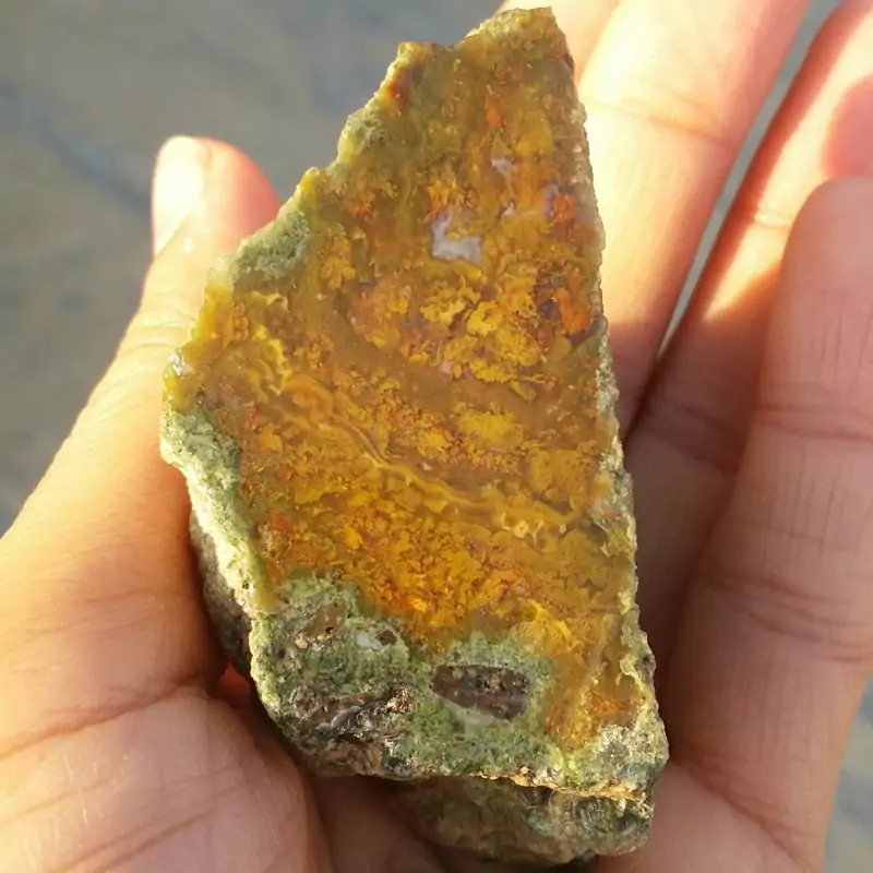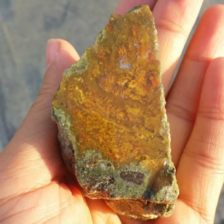 اسلایس سنگ راف عقیق منظره پاییزی بسیار دیدنی شاهکار خلقت کاملا طبیعی با قابلیت ساخت چند نگین دیدنی و محشر کد 8001