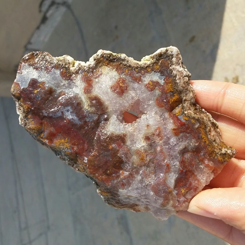 اسلایس سنگ راف عقیق منظره آمیتیست دار بسیار زیبا و خاص 100 در 100 طبیعی شاهکار خلقت کد 12125